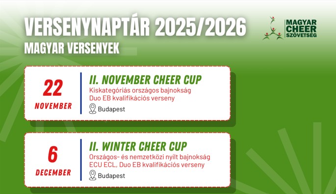 A Magyar Cheer Szövetség célja, hogy minél több új csapat alakuljon, és a sportág közelebb kerüljön a fiatalokhoz. 2026-ban sor kerül az első hazai cheer diákolimpiára, amelynek előkészítése már megkezdődött. A verseny rendszere rugalmas: akár kisebb csoportok vagy párosok is elindulhatnak, a koreográfiákhoz videós mintákat biztosítanak. A program így ideális belépési lehetőség azoknak az iskoláknak, amelyek most ismerkednek a sportággal.